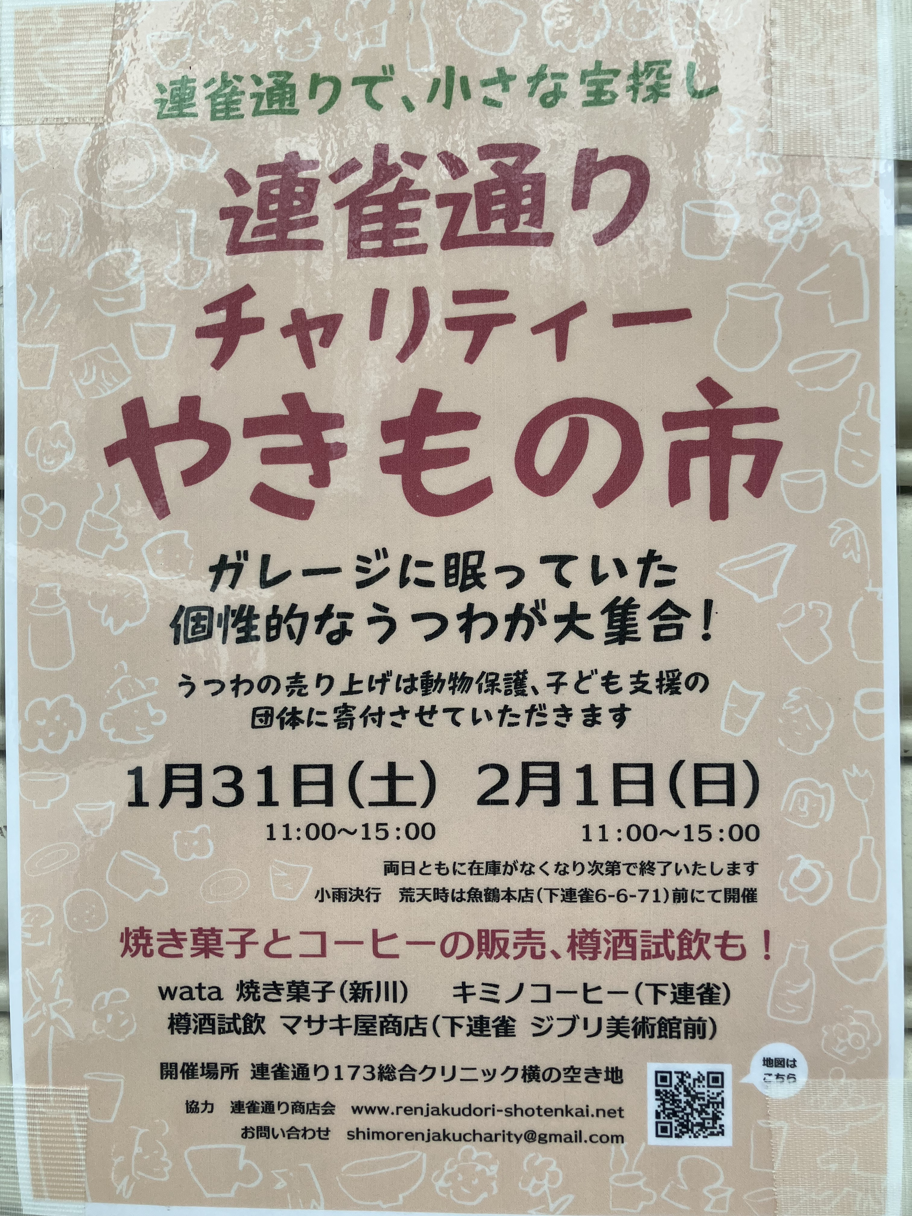 今週末、1月31日土曜日、2月1日日曜日に連雀通りチャリティー焼きもの市